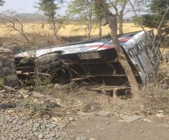 विदिशा | हैदरगढ़ थाना अंतर्गत खिरिया के बीच बारातियो से भरी एक बस अचानक से अनियंत्रित हो कर पलट गयी जिससे बस में सवार कासी बाराती घायल हो गएघटना की जानकारी लगते ही स्थानीय पुलिस ने मौके पर पहुंचकर घायलों को एम्बुलेंस और पुलिस की गाडी से उपचार अस्पताल पहुंचाया बताया जा रहा हैं की बस सवार 55 बाराती घायल हुए हैं लेकिन पुलिस के 23 लोग घायल हुए हैं बरातियों के मुताबिक केन्द्र में सिर्फ एक डाक्टर मौजूद था। जबकि ड्रेसर, कम्पाउंडर गायब थे। जिससे समय पर उन्हें उपचार नहीं मिल सका। मरीजों से मिलने केन्द्र पहुंचे एसडीएम गोपाल वर्मा ने अनुपस्थित कर्मचारियों को नोटिस जारी करने के निर्देश दिए हैं। पुलिस से मिली जानकारी के अनुसार पड़रिया जागीर निवासी मोहरसिंह कुशवाह ने बताया कि वह अपने छोटे भाई चंदनसिंह की बरात लेकर रायसेन जिले के ग्राम मरदानपुर गए थे। तय समय के मुताबिक 6 बजे बरातियों को बैठाकर बस को रवाना कर दिया था। बस करीब साढ़े 8 बजे हैदरगढ़ के पास पुलिया में बस गिर गई। उन्होंने बताया कि बस ड्रायवर तेज गति से बस चला रहा था। जिसके कारण यह घटना हुई है।