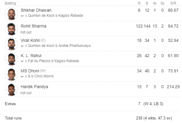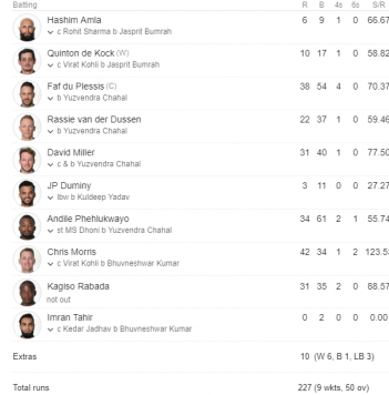 खेल डेस्क | इंग्लैंड में आयोजित वर्ल्ड कप के मैच में भारत ने साऊथ अफ्रीका के खिलाफ शानदार जीत हासिल की हैं भारत ने अपने पहले ही मैच में साऊथ अफ्रीका को 6 विकेट से हरा दिया हैं इस मैच में साऊथ अफ्रीका ने टास जीतकर पहले बल्लेबाजी करने का निर्णय किया था जिसमे पहले बल्लेबाजी करते हुए अफ्रीका ने 50 ओवर में 9 विकेट पर 227 रन बनाए। जिसमें सबसे अधिक क्रिस मोरिस ने 42 रन अपनी टीम के लिए बनाये वही भारत की और से रोहित शर्मा ने 122 रनो का योगदान दिया रोहित शर्मा इस मैच में नोटआउट रहे तो वही हार्दिक पंड्या ने अंतिम ओवर में सात गंदो में 15 रन बनाये सबसे अधिक रनो के योगदान के लिए रोहित शर्मा को मैन ऑफ़ द मैच से नवाज़ा गया