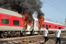 नईदिल्ली| फरीदाबाद पलवल के बीच तेलांगना एक्सप्रेस के ऐसी कोच में आज सुबह लग गयी घटना जानकारी लगने पर ट्रैन को रुकवाकर ट्रैन में से सभी यात्रिओ को सुरक्षित बाहर निकला गया दमकल कर्मी आग पर काबू पाने का प्रयास कर रही हैं तमाम रेलवे के बड़े अधिकारी भी मौके पर पहुंच गए हैं और घटना कैसे हुयी मामले की जाँच कर रहे हैं रेलवे . उत्तर रेलवे के सीपीआरओ ने कहा कि आज सुबह 7.43 बजे तेलंगाना एक्सप्रेस के ब्रेक बाइंडिंग में आग लग गई. सभी यात्री सुरक्षित हैं.