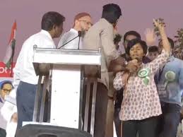 हैदराबाद| एआईएमआईएम द्वारा आयोजित नागरिकता संशोधन कानून (सीएए), राष्ट्रीय नागरिक रजिस्टर (एनआरसी) और राष्ट्रीय जनसंख्या रजिस्टर (एनपीआर) के विरोध में आयोजित रैली में उस समय बबाल मच गया जब एक महिला ने मंच पर पहुंच कर पाकिस्तान जिंदाबाद के नारे लगाए | असदुद्दीन ओवैसी की मौजूदगी में ‘पाकिस्तान जिंदाबाद’ का नारा लगाने पर राजनीति में बबाल मच गया हैं| पाकिस्तान समर्थित नारा लगाने वाली लड़की अमूल्या लियोना के खिलाफ राजद्रोह का केस दर्ज हो चुका है. कोर्ट ने अमूल्या लियोना को 14 दिन की न्यायिक हिरासत में भेज दिया है. उसे परप्पाना अग्रहारा की सेंट्रल जेल में रखा जाएगा.