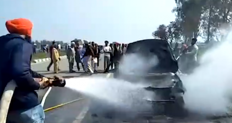 मोंगा | पंजाब के मोंगा में चलती कार में अचानक से आग लग गयी आग लगने से कार में सवार दो युवको चलती कार से कुंद अपनी जान बचाई | इस घटना में दो युवक बाल-बाल बच गए, लेकिन कार को जलता देख एक युवक बेहोश हो गया। जिसे अस्पताल में भर्ती कराया गया। होश में आने के बाद युवक ने बताया कि वह अपने दोस्त की गाड़ी लेकर मोगा आया था। वापस लौटते समय अचानक कार में आग लग गई। युवक ने कहा कि आग लगने के बाद उसने फायर ब्रिगेड को फोन किया। लेकिन फायर ब्रिगेड की गाड़ी समय पर नहीं पहुंची। जब तक गाड़ी पहुंची कार पूरी तरह जल गई थी। वहीं फायर ब्रिगेड के जगदीश शर्मा ने बताया कि उन्हें जैसे ही घटना की सूचना मिली वे तत्काल निकल पड़े। उन्होंने कहा कि रेलवे फाटक बंद होने के कारण वे समय पर नहीं पहुंच पाए।