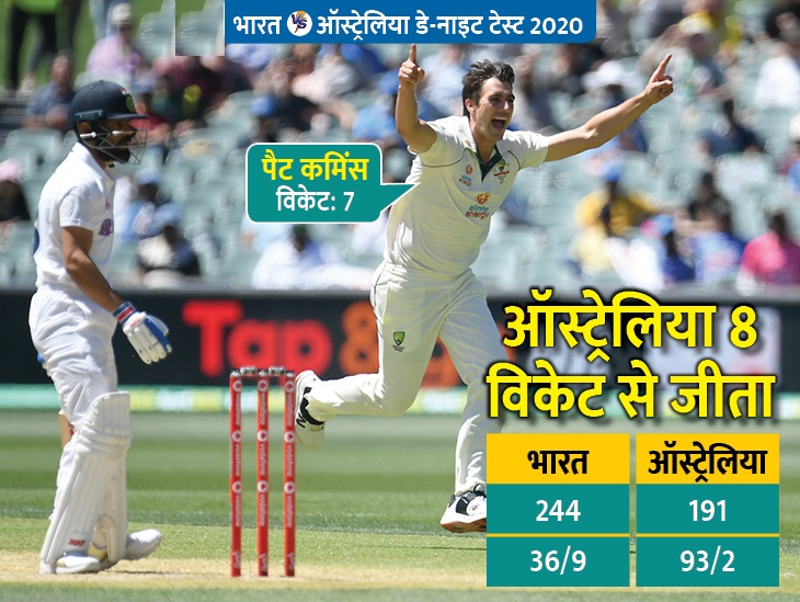 टीम इंडिया ने ऑस्ट्रेलिया के खिलाफ 4 टेस्ट की सीरीज का पहला मैच शनिवार को 8 विकेट से गंवा दिया। इस डे-नाइट टेस्ट में भारत ने एक पारी में अपना सबसे छोटा 36 रन का स्कोर भी बनाया। इस हार के बाद टीम इंडिया को अलर्ट होना होगा, क्योंकि उसके साथ एक खराब रिकॉर्ड जुड़ गया है।