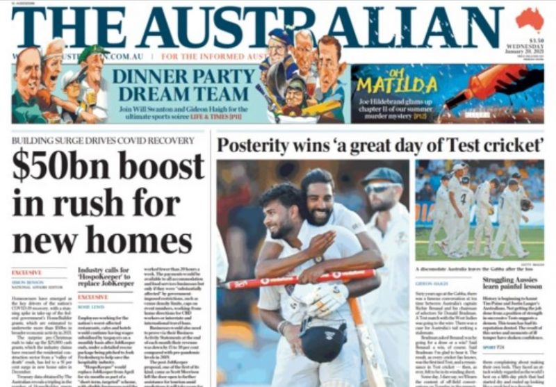 ‘द ऑस्ट्रेलियन’ ने लिखा, ‘टीम इंडिया के जादुई तूफान ने गाबा के किले को ढहा दिया। स्टार खिलाड़ियों के बिना, संघर्ष करती और चोटिल टीम ने फुल स्ट्रेंथ ऑस्ट्रेलियन को शिकस्त दी। दरअसल, इससे पहले गाबा के मैदान पर ऑस्ट्रेलियाई टीम नवंबर 1988 में हारी थी। तब वेस्टइंडीज ने नौ विकेट से शिकस्त दी थी।’
