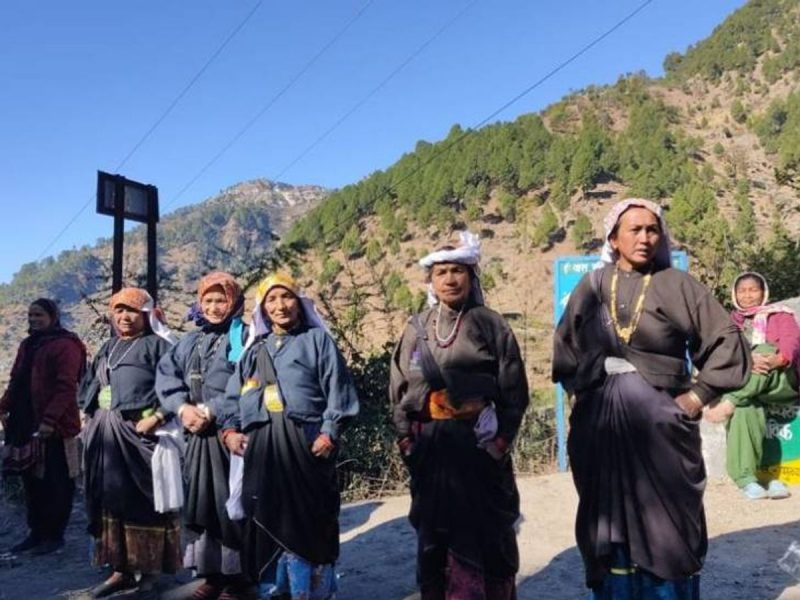 पारंपरिक परिधान में सड़कों पर एक-दूसरे का हाथ थामे इन लोगों की तस्वीर दूर से देखने पर किसी मेले की तस्वीर लगती है। लेकिन असल में यह एक साझा संघर्ष की तस्वीर है जो महज इसलिए किया जा रहा है कि गांव वालों को एक अदद सड़क मिल जाने का वो वादा पूरा कर दिया जाए, जो दो-दो मुख्यमंत्री उनसे करके भूल चुके हैं।