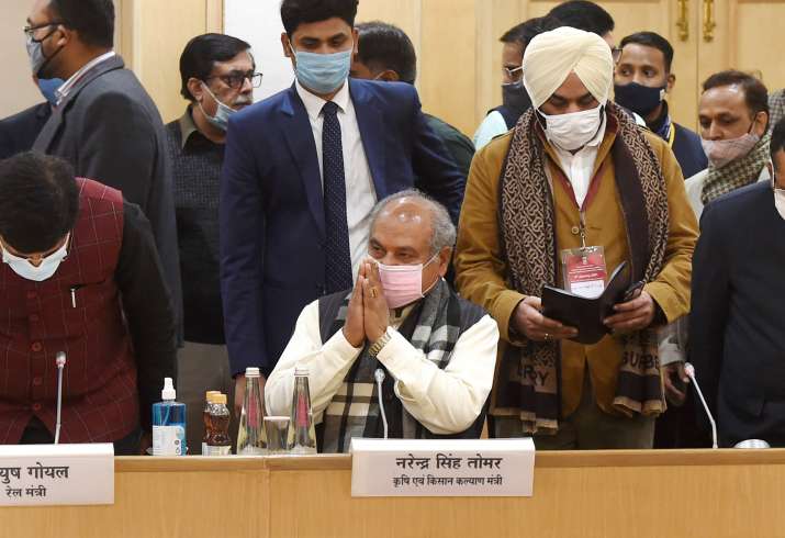 दिल्ली के विज्ञान भवन में किसानों और सरकार की मीटिंग में लंच से पहले तक कोई उम्मीद नजर नहीं आ रही थी। दोपहर 3 बजकर 50 मिनट पर लंच ब्रेक हुआ। इसी दौरान कृषि मंत्री नरेंद्र सिंह तोमर ने गृह मंत्री अमित शाह को फोन लगाकर किसानों की चिंता बताई। चिंता यह कि सुप्रीम कोर्ट की कमेटी 2 महीने में रिपोर्ट दे देगी, उसके बाद कृषि कानूनों के अमल पर लगी रोक कभी भी हट सकती है। इस पर शाह ने तोमर ने कहा- किसानों को बताएं कि सरकार डेढ़ साल तक कानून होल्ड करने को तैयार है।