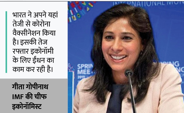 IMF की चीफ इकोनॉमिस्ट गीता गोपीनाथ ने इस रिपोर्ट के रिलीज होने के बाद कहा कि भारत में वैक्सीनेशन तेजी से हुआ है। इससे अर्थव्यवस्था में तेज रिकवरी में मदद मिली है।