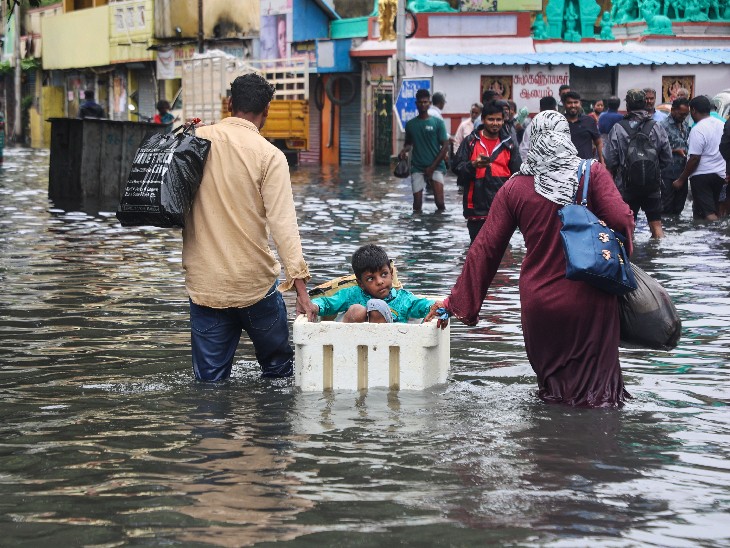 तमिलनाडु की राजधानी चेन्नई में दो दिनों से हो रही बारिश के चलते बाढ़ के हालात बन गए हैं। मौसम विभाग ने सोमवार को भी चेन्नई में भारी बारिश होने का अनुमान जताया है। चेन्नई और आसपास के इलाकों में स्कूलों को दो दिन के लिए बंद कर दिया गया है। अधिकतर सरकारी दफ्तर भी बंद हैं। मुख्यमंत्री एम. के. स्टालिन ने प्राइवेट कंपनियों से अपील की है कि वे कर्मचारियों को छुट्टी दे दें या घर से काम करने की अनुमति दें।
