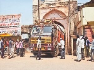 मंडी गेट में फंसा ट्रक, आधा घंटे तक आवागमन रहा प्रभावित