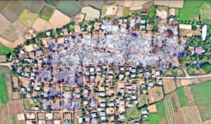 आग के कारण बिन कस्बे में गोल्डन स्तूपों के पास तबाही के अवशेष ही बचे हैं। सेना के कहर की तस्वीर एक पत्रकार ने फरवरी में अपने कैमरे में कैद की। अमेरिका इसे अब तक का सबसे बड़ा नरसंहार मान रहा है। उल्लेखनीय है कि म्यांमार में नेशनल लीग फॉर डेमोक्रेट्रिक पार्टी की नेता आंग सान सू की सरकार का तख्तापलट कर जुंटा सेना ने फरवरी, 2021 में सत्ता पर कब्जा कर लिया था।