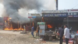 पुणे के खराड़ी इलाके में बुधवार दोपहर 12 दुकानों में भीषण आग लग गई। आग सबसे पहले एक फर्नीचर की एक दुकान में लगी थी और इसने कुछ ही देर में एक-एक करके 11 अन्य दुकानों को अपनी चपेट में ले लिया। इस अग्निकांड में करोड़ों का नुकसान हुआ है। फिलहाल, दमकल विभाग की 8 गाड़ियां आग बुझाने के काम में जुटी हुई हैं।