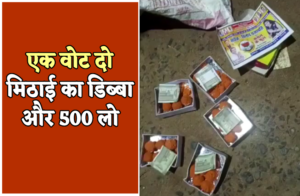 रविवार की रात 9 बजे के लगभग वार्ड 1 का राजनैतिक पारा उस समय हाई हो गया, जब इलाके के लोगों ने कुछ लोगों को मिठाई बंटाते पकड़ लिया। ये लोग एक बोरी में मिठाई के डिब्बे रखे थे और घर-घर जाकर बांट रहे थे। लोगों जब इन्हें पकड़ा तो इन डिब्बों में बूंदी के लड्डू के साथ 500-500 रुपए के नोट रखे हुए थे। साथ में वार्ड क्रमांक 1 के भाजपा प्रत्याशी विनोद प्रजापति के पम्पलेट भी रखा था।