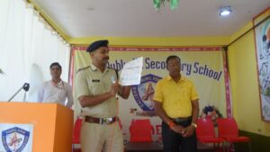 गंज बासौदा सड़क सुरक्षा सप्ताह के अंतर्गत आज बेलोट रोड स्थित मॉडल पब्लिक हायर सेकेंडरी स्कूल में गंजबासोदा के यातायात प्रभारी उपनिरिक्षिक श्री रितेश बाघेला एवं उनके स्टाफ द्वारा स्कूल के बच्चों को रोड सेफ्टी के नियमों की जानकारी दी। साथ ही यातायात के नियमों से भी अवगत कराया इस अवसर पर वच्चों ने कई तरह के प्रश्न भी बाघेला सर से किया एक बच्चे ने पुछा सर हम यदि गाड़ी में किसी तरह का चेंज करते है तो पुलिस चालान क्यों बनाती है इसी तरह एक बच्चे ने पुछा लायसेंस कितने प्रकार के होते है। बच्चों के कई सरे सवालों का सर द्वारा जवाब दिया गया। इसके साथ ही कई बच्चों ने यातायात को संचालित करने बाले मॉडल भी प्रस्तुत किये। जिसका निरिक्षण बाघेला सर द्वारा किया गया। इसके साथ ही स्कूल संचालक द्वारा नगर में नियमित वाहन चेकिंग की मांग भी की। इस अवसर पर स्कूल के बच्चे स्कूल संचालक ,स्कूल प्राचार्य एवं समस्त शिक्षक उपस्थित थे