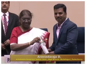 राष्ट्रपति ने कहा, “यह अवसर महान शिक्षक-दार्शनिक और भारत के पूर्व राष्ट्रपति डॉ एस राधाकृष्णन की जयंती का प्रतीक है। मैं उन्हें विनम्र श्रद्धांजलि अर्पित करता हूं। वह उन सभी शिक्षकों के लिए एक प्रेरणा हैं जो छात्रों में ज्ञान के अलावा, मानवीय मूल्यों को स्थापित करने का प्रयास करते हैं।” इस समारोह में एजुकेशन, स्किल डेवलपमेंट एंड एंटरप्रेन्योरशिप मंत्री धर्मेंद्र प्रधान भी मौजूद रहे।