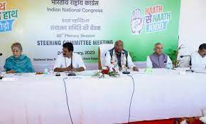 शहीद वीर नारायण सिंह नगर, नया रायपुर में कांग्रेस के 85वें महाधिवेशन के पहले दिन शुक्रवार को कांग्रेस स्टीयरिंग कमेटी की बैठक हुई। शाम 4 बजे सब्जेक्ट कमेटी की बैठक होगी। जहां 6 प्रस्तावों पर चर्चा होगी।
