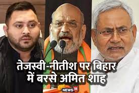 बिहार के पश्चिमी चंपारण जिले में शनिवार को केंद्रीय गृह मंत्री अमित शाह ने एक जनसभा को संबोधित किया। नेपाल सीमा से सटे पश्चिमी चंपारण के वाल्मीकि नगर में आयोजित जनसभा में अमित शाह ने बिहार सीएम नीतीश कुमार पर जमकर हमला बोला। साथ ही उनके निशाने पर बिहार का जंगलराज भी रहा। 20 मिनट के भाषण में गृह मंत्री ने 12 बार जंगलराज और 20 बार नीतीश का नाम लिया। मंच से कहा कि अब नीतीश के लिए भाजपा के सारे दरवाजे बंद हो गए हैं। उन्होंने राज्य में चल रही केंद्र की योजनाओं का भी जिक्र किया। साथ ही बिहार में अपराध के बढ़ते ग्राफ को लेकर महागठबंधन सरकार पर हमले किए। भाषण की शुरुआत में ही अमित शाह ने लोगों से पूछा कि जंगल राज से मुक्ति चाहिए या नहीं। अगर चाहिए तो 2024 में फिर से मोदी जी को प्रधानमंत्री बनाने का निश्चय कीजिए। जंगलराज से मुक्ति के लिए 2024 में भाजपा को जीताकर शुरुआत करिए।
