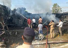 मालगाड़ी आपस में टकराने से लगी आग से लोको पायलट की मौत हुई – बताया जा रहा है कि सिंहपुर रेलवे स्टेशन के समीप दो मालगाड़ी आपस में टकराईं हैं। मालगाड़ी की टक्कर इतनी भीषण थी कि आग भड़क उठी। हादसे में एक की मौत हुई जबकि पांच लोग बताए जा रहे हैं। मौके पर बचाव कार्य जारी है। मालगाड़ी आपस में टकराने से लगी आग से लोको पायलट की मौत हुई है। सुबह 7:30 बजे की यह घटना है जिसकी सूचना मिलने पर मौके पर डॉक्टरों की टीम भी पहुंची है।