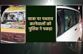 पकड़ा है। मंगलवार देर शाम यात्रा को रोकने की कोशिश की गई थी और वाहनों पर पत्थर बरसाए गए। जन आशीर्वाद यात्रा में पथराव की घटना के बाद से बीजेपी और कांग्रेस में बयानबाजी तेज हो गई है। दोनों दल इस घटना के लिए एक—दूसरे को जिम्मेदार ठहरा रहे हैं।