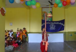 इसके बाद बच्चों द्वारा मटकी फोड़ प्रतियोगिता का आयोजन किया गया , बच्चो ने बहुत ही रोचक तरीके से मटकी फोड़ने का प्रयाश किया