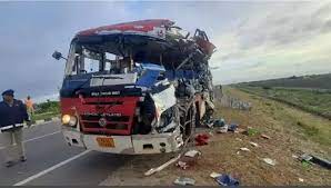 कर्नाटक के चित्रदुर्ग जिले में भीषण सड़क दुर्घटना की खबर आ रही है। गोल्लाहल्ली क्षेत्र में राष्ट्रीय राजमार्ग 150 के पास एक बस की ट्रक से टक्कर हो गई है। इसमें चार लोगों की मौके पर ही मौत हो गई जब कि दस अन्य गंभीर रूप से घायल हैं। कर्नाटक पुलिस ने बताया है कि यह दुर्घटना तड़के करीब तीन बजे हुई। दुर्घटना के बाद ट्रक का चालक मौके से फरार हो गया।