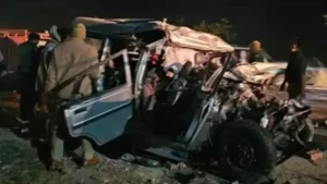 फलोदी:- राजस्थान के फलोदी जिले में भारतमाला एक्सप्रेस-वे पर देर शाम फिर भीषण हादसा हो गया। सियोलनगर और चापासर के बीच तेज रफ्तार एसयूवी डिवाइडर से टकरा गई। हादसा इतना भीषण था कि कार के परखच्चे उड़ गए और उसमें सवार पांच लोग गंभीर रूप से घायल हो गए। बता दें कि इसी भारतमाला एक्सप्रेस-वे पर रविवार शाम 7 बजे भयावह हादसा हुआ था। जिसमें 10 महिला और चार बच्चों सहित 15 लोगों की मौत हो गई थी।