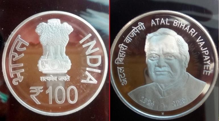 नई दिल्ली। भारत के प्रधानमंत्री ने भारत के पूर्व प्रधानमंत्री अटल बिहारी वाजपेयी की 95वीं जन्मतिथि के पहले 100 रुपय का सिक्का जारी किया हैं इस सिक्के में 35 ग्राम के इस सिक्के में 50 फीसद चांदी, 40 फीसद तांबा, पांच फीसद निकिल और पांच फीसद जस्ते का इस्तेमाल किया गया हैं | सूत्रों के अनुसार पूर्व प्रधानमंत्री अटल बिहारी वाजपेयी के इस स्मारक सिक्के के एक पहलू पर अटलजी का चित्र, उनका जन्म वर्ष 1924, मृत्यु वर्ष 2018 और हिदी और अंग्रेजी में उनका पूरा नाम अंकित है। प्रधानमंत्री मोदी ने एक विशेष कार्यक्रम में यह सिक्का जारी किया है। इस स्मारक सिक्के को सौ रुपये के मूल्य वर्ग में रखा गया है, हालांकि ये प्रचलन में नहीं आएंगे। इन्हें 3300 से 3500 रुपये की प्रीमियम दरों पर बेचा जाएगा।